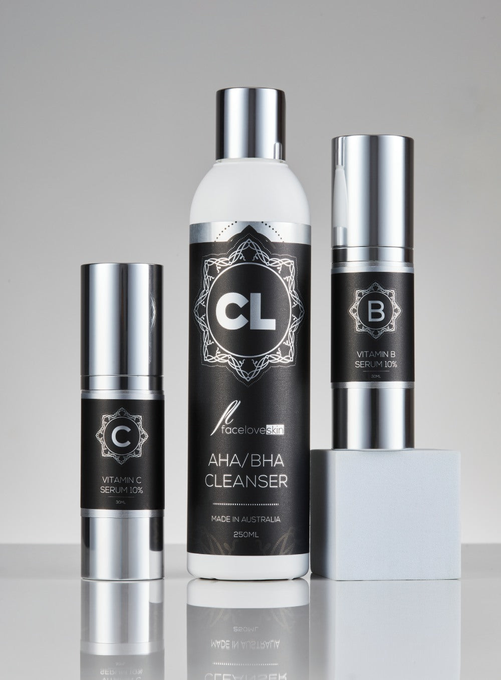AHA/BHA Cleanser – Exfoliates dead skin cells, allowing other treatments to penetrate more effectively and reducing pigmentation over time.